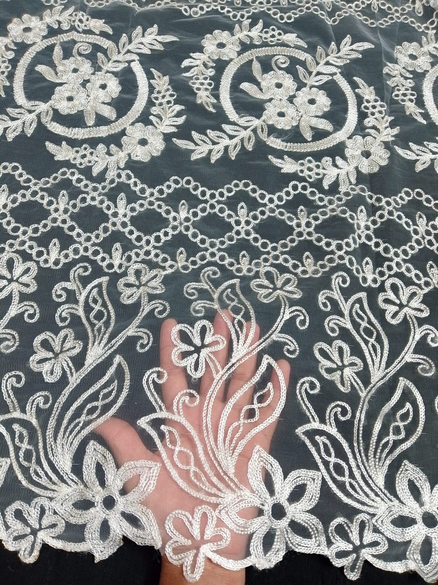 dresses. The transparent net base highlights the detailed thread work while maintaining a lightweight and