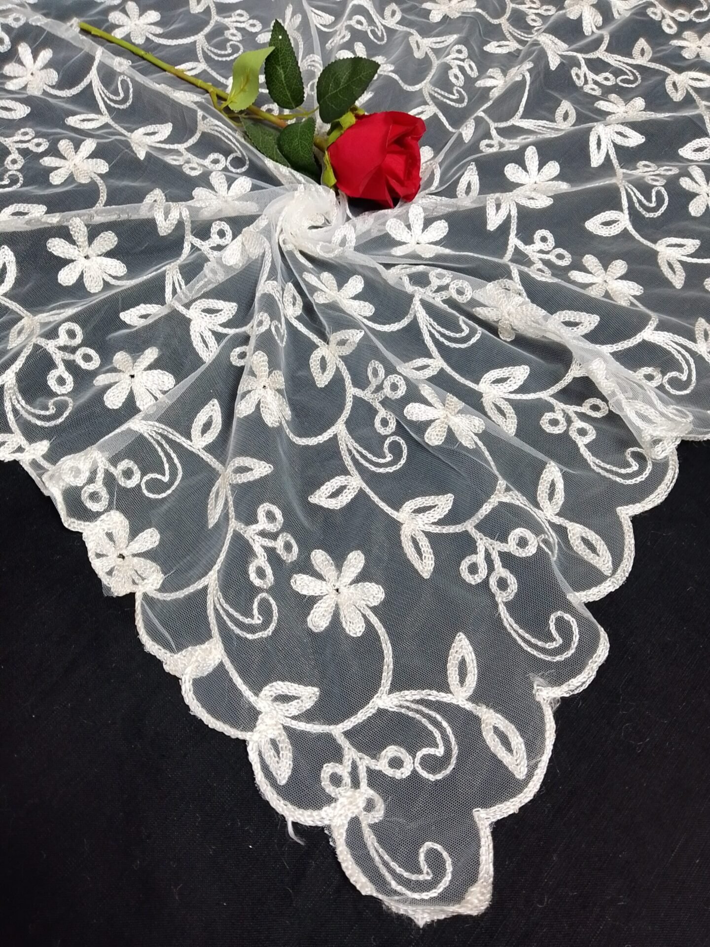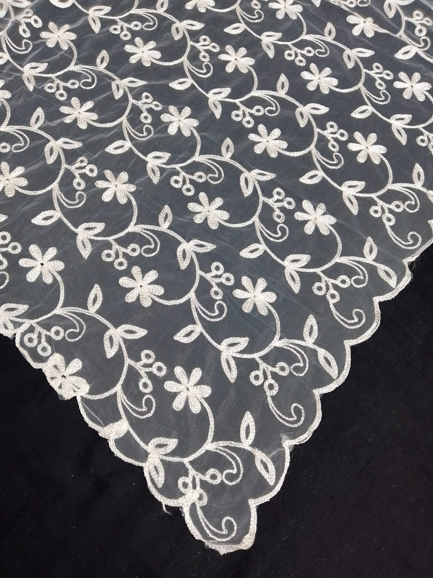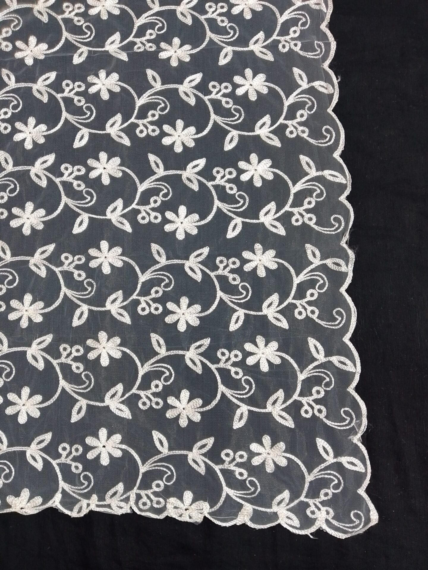 This modern net dupatta is beautifully crafted with floral vine embroidery created using fine white thread embroidery on premium
