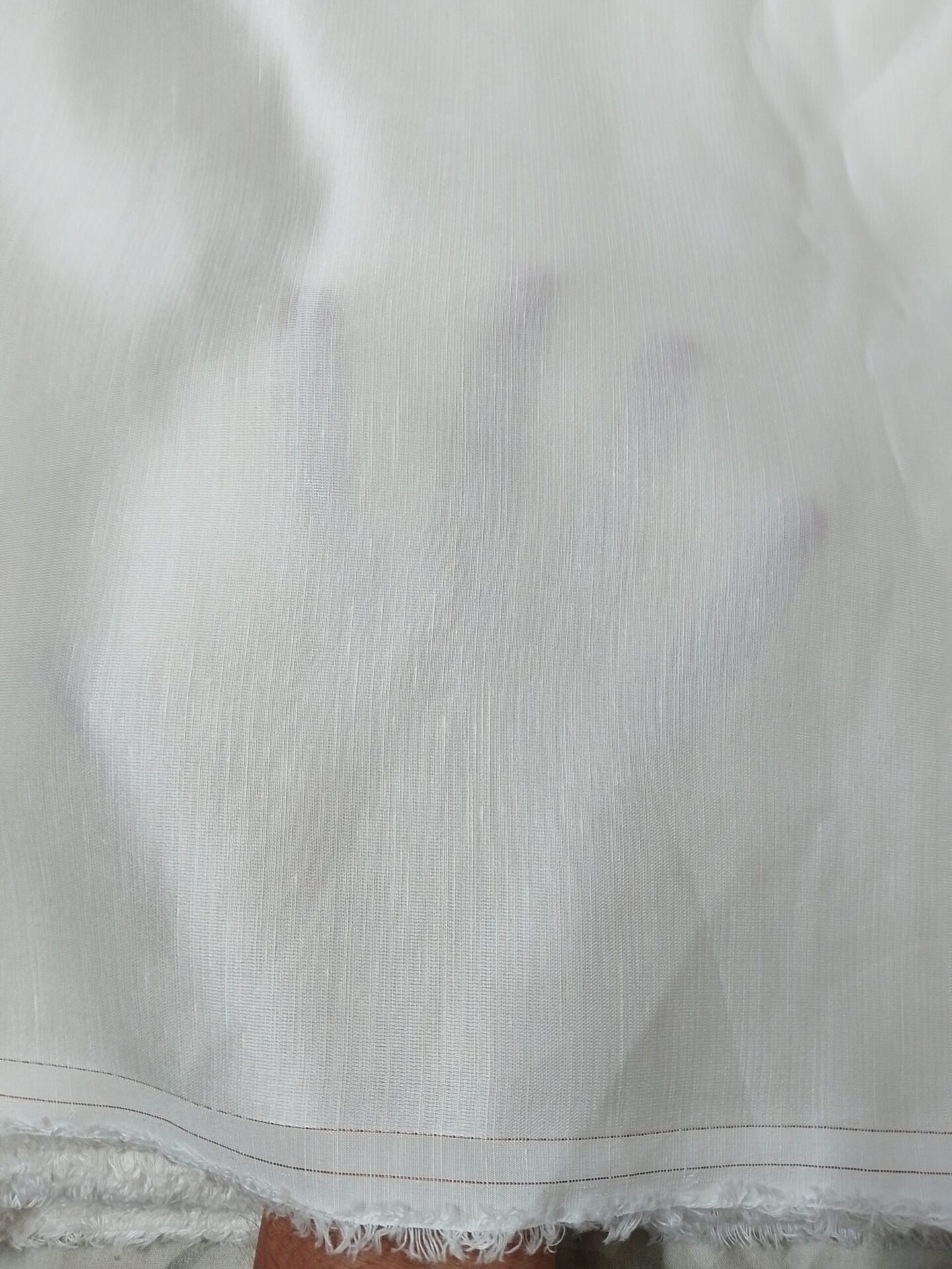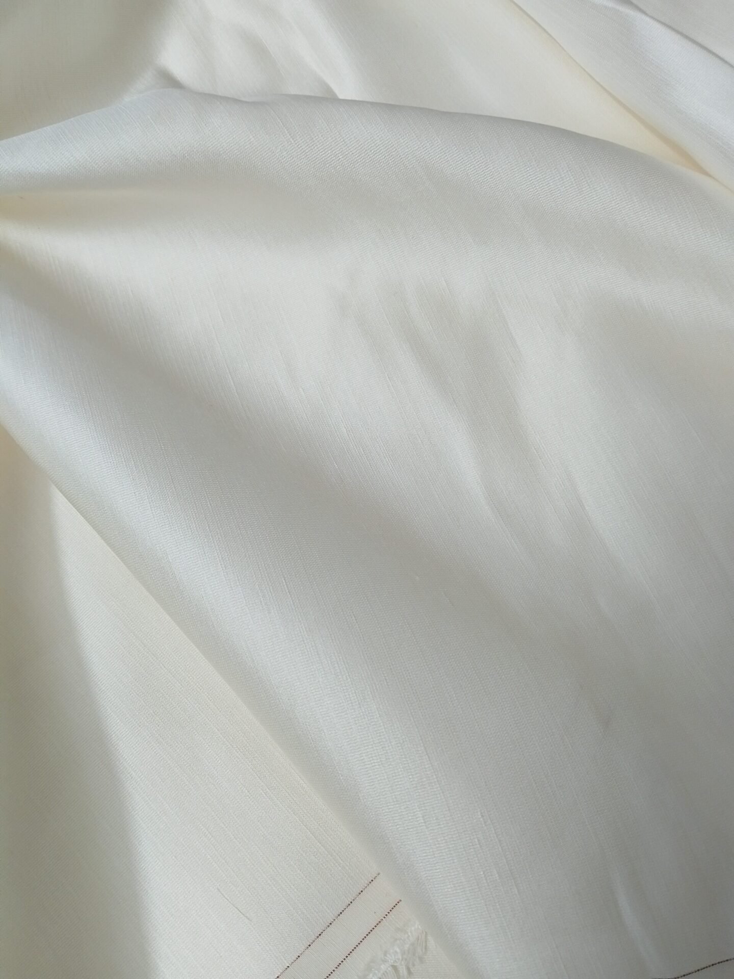 Premium dyeable white Linen Satin fabric suitable for suits, kurtis, lehengas and designer outfits. Soft texture, excellent fall and perfect for custom dyeing and embroidery work.